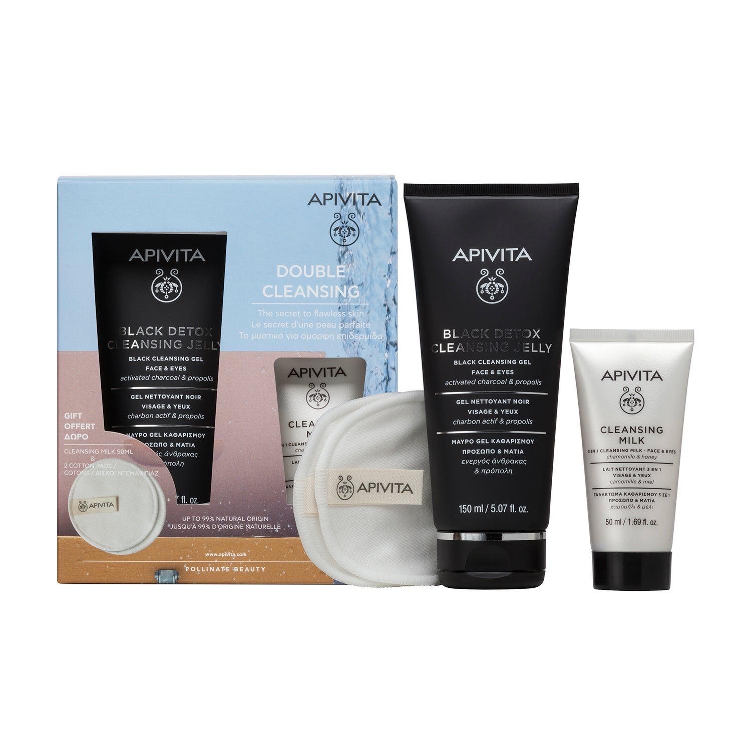 Apivita set Black Detox cleanser gel za čišćenje lica 150ml + Mini mlijeko za čišćenje