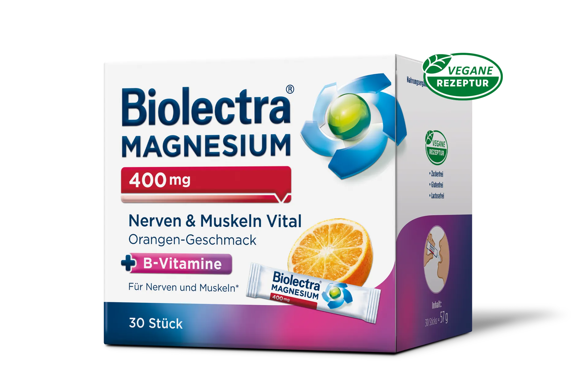 Biolectra Magnezij 400 Vital je dodatak prehrani sa sladilima koji u jednoj vrećici sadrži 400 mg magnezija (magnezijev citrat i magnezijev oksid) te vitamine B1, B2, B6 i B12.