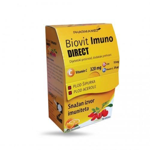 Biovit Imuno Direct je dodatak prehrani sa vitaminom C, vitaminom D3 i cinkom namijenjen za normalno funkcionisanje imunog sistema.