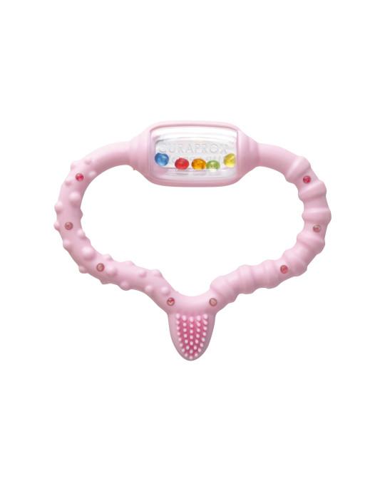 Glodalica CURAPROX CURAbaby s masažnom četkicom za zube i zvečkom olakšava nelagodu i bolove kod nicanja zuba i to bez upotrebe sredstava protiv bolova. Optičke, akustične i oralne stimulacije također potiču razvoj djetetove prirodne radoznalosti već od drugog mjeseca. Prsten za žvakanje CURAbaby je masažna i istovremeno prva četkica za zube koja priprema bebe na odgovarajuću četkicu za zube Curakid 4260.