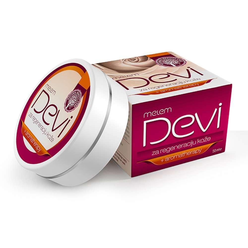 Svi sastojci Devi melema za regeneraciju imaju blagotvorno dejstvo na otklanjanje svraba i perutanja kože, istovremeno otklanjajući ljuspičasti površinski sloj kože kod ekcema i psorijaze. Melem smiruje zapaljenske procese i reguliše vlažnost kože što predstavlja dobru preventivu protiv oštećenja kože.