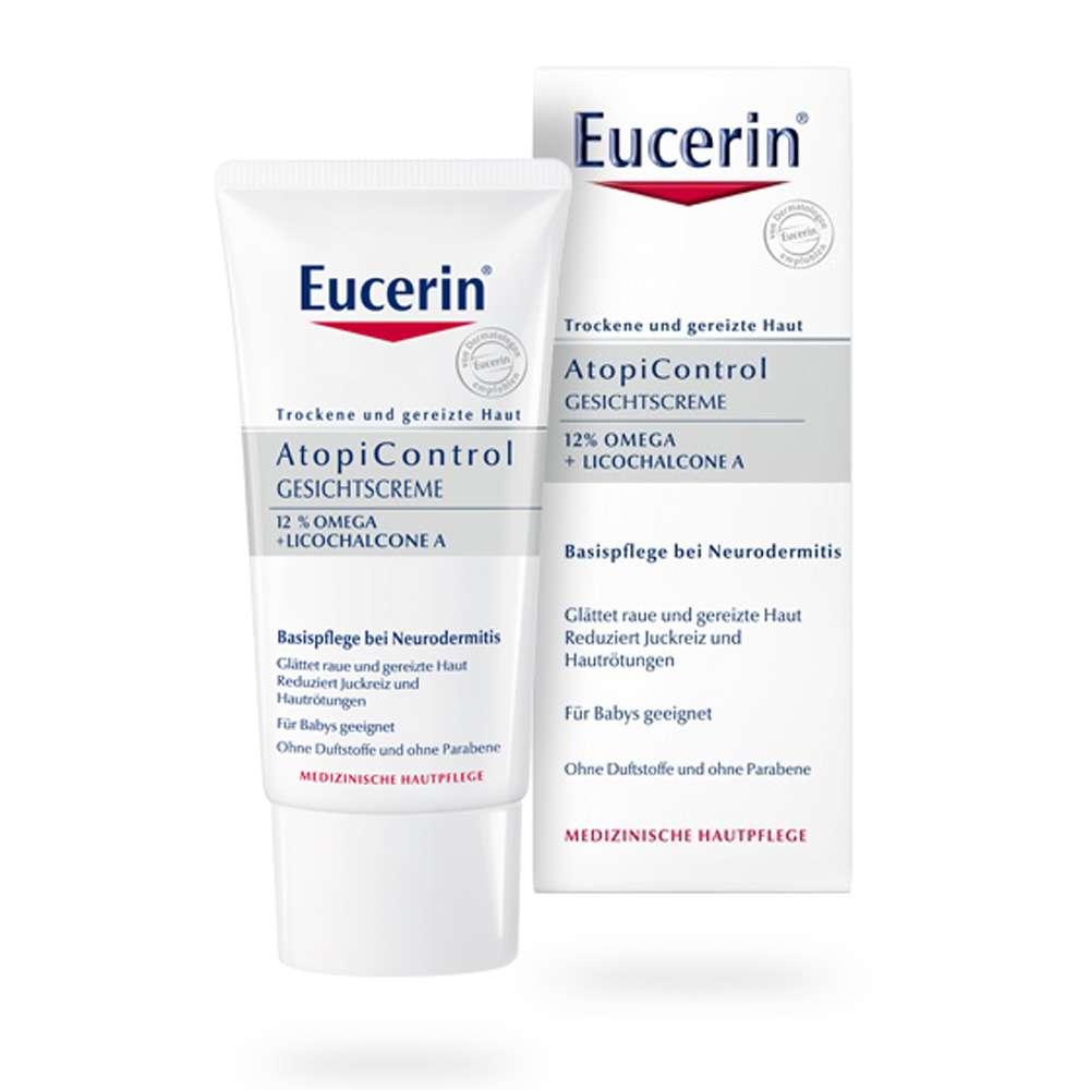 S obzirom na to da sadrži 12% omega-6 masnih kiselina koje umiruju i hrane suhu, ispucalu kožu te protuupalni sastojak licochalcon A koji djeluje protiv iritacija, Eucerin AtopiControl krema za lice hidratizira i njeguje kožu te smanjuje hrapavost dok istovremeno uklanja svrbež i zategnutost kože. Koža je meka na dodir te je osjetno glađa. Klinički je dokazana njezina usklađenost s atopičnom kožom te je mogu koristiti djeca i dojenčad od 3 mjeseca nadalje.