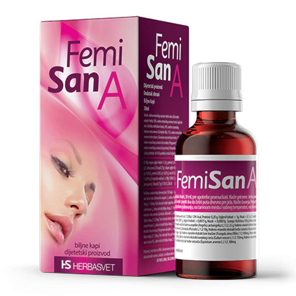 Femisan A je prirodna formula namenjena ženskoj populaciji. Odabrano ljekovito bilje na prirodan način reguliše menstrualni ciklus i hormonski disbalans. Može se koristiti u prevenciji pojave cista i upala uro-genitalnog trakta. Pozitivno utiče na plodnost i očuvanje zdravlja žena u periodu od puberteta do menopauze.