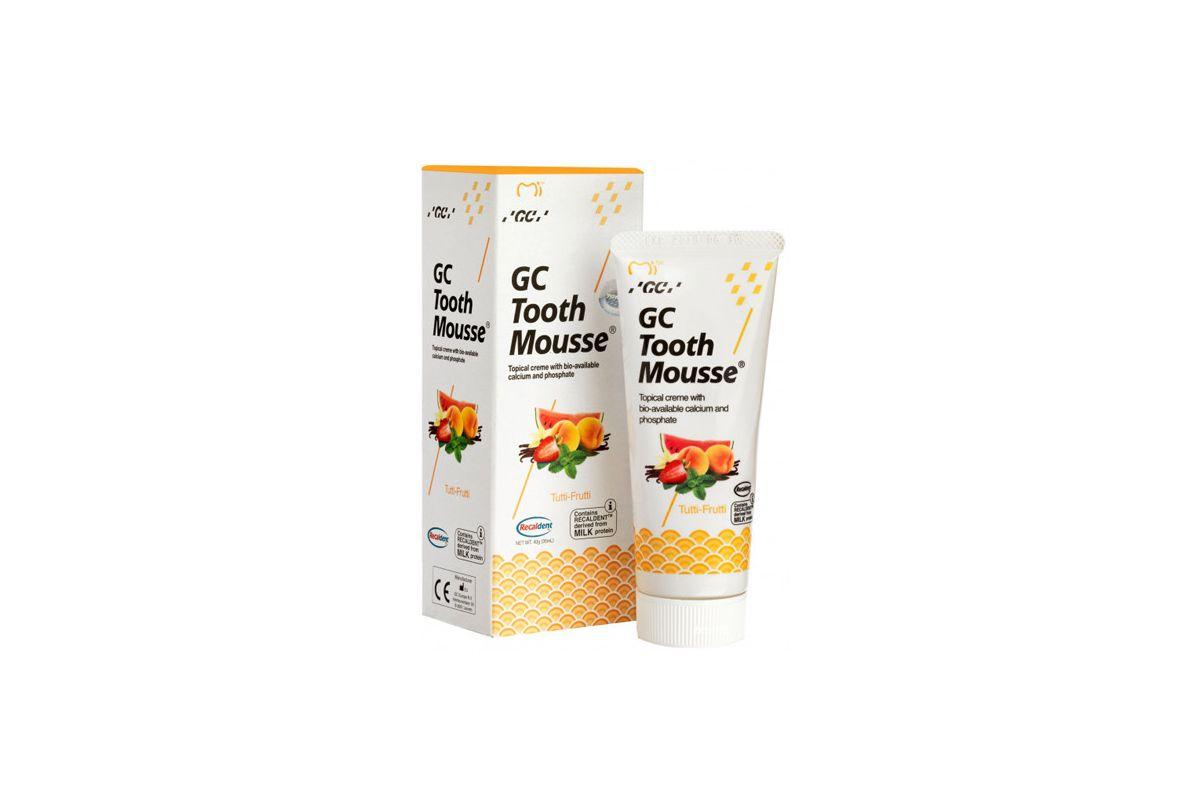 Učinite nešto više za svoje zube. GC Tooth Mousse je remineralizirajuća zaštitna krema namijenjena jačanju otpornosti zuba na vanjske utjecaje i sprečavanje osjetljivosti zuba i desni. Zahvaljujući mliječnim bjelančevinama, RECALDENT™ vašim zubima pruža veliku dozu kalcija i fosfata. Tako dolazi do jačanja zubne cakline, cjelokupne revitalizacije i zatvaranja preosjetljivih dentalnih tubula.