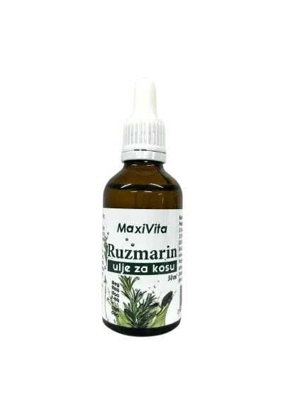 Ruzmarin ulje potiče rast kose jer direktno djeluje na krvne žile koje hrane vlasište. Prirodna njega kose i vlasišta za lomljivu i oštećenu kosu kao i suho i osjetljivo vlasište. Potiče rast trepavica i obrva, njega brade i ravnomjeran rast brade.