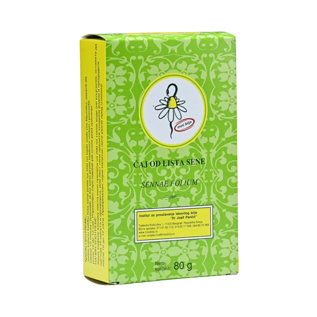 Upotreba: Čaj od lista sene preporučuje se kod povremenih zatvora, za regulisanje stolice.