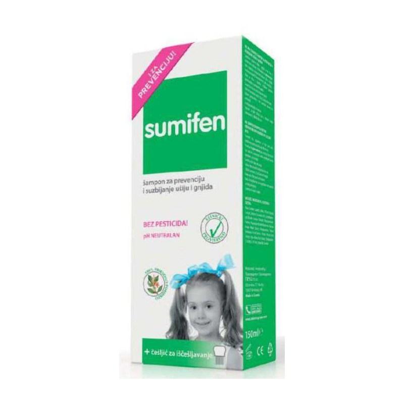 Zeleni Sumifen je prvi potpuno prirodni šampon protiv gnjida i ušiju koji djeluje i preventivno. Snaga prirodnih sastojaka u novom Sumifenu zaslužna je za potpuno učinkovito rješavanje i zaštitu od ušiju i gnjida. Ne sadrži pesticide, već 100% prirodne i učinkovite aktivne sastojke.