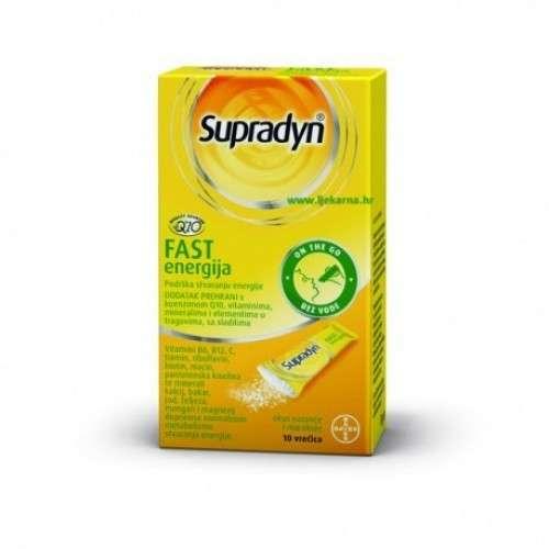 Supradyn FAST energija je nova generacija multivitaminskih preparata s mineralima i koenzimom Q10 koji je kao dodatak ishrani namijenjen podršci vitalnosti i energetskim procesima u tijelu tokom cijelog dana.